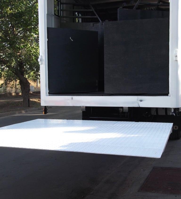 Ejemplo: Puede levantar cargas hasta la altura de una mesa alta.Material: Chapa antideslizante de 3.2 mm.